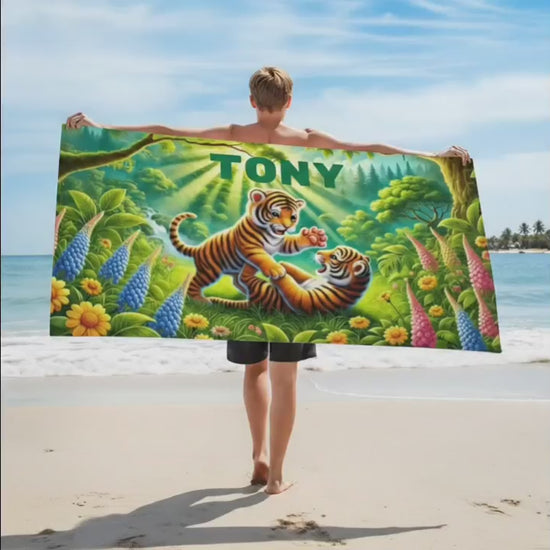 🐯🏖️ Serviette de plage personnalisée Tigre de la jungle - Un cadeau magique pour les aventures estivales 🏖️🐯