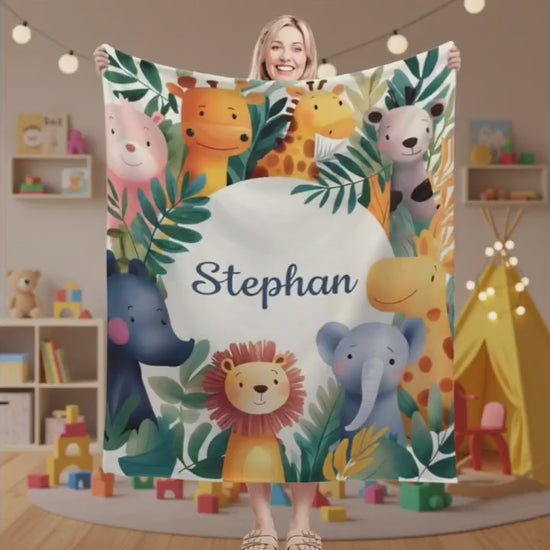 🦁🐘🦒 Personalized Safari Animal Blanket - A Magical Jungle Adventure Gift 🦒🐘🦁